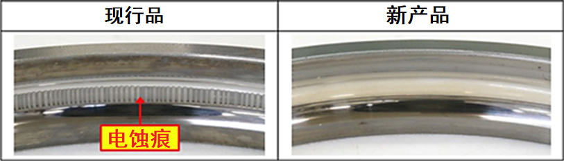 1.開發背景隨著EV和HV車輛的普及,人們開始擔憂因電流通過驅動馬達軸承內部時引發的電蝕現象。當軸承發生電蝕時,軸承的滾道會產生電蝕痕跡,這可能會導致車輛行駛時產生異常的噪音和振動,加快軸承磨損,從而影響驅動馬達功能。為了防止電蝕,通常會使用絕緣性能優異的陶瓷球軸承,但其成本高的問題一直難以解決。斯艾浮開發的新產品,通過在一般軸承鋼的外圈外徑、外圈端面上施加特殊的涂層,使軸承具備絕緣功能,成功防止了電蝕的發生。與現行品相比,我們的目標是通過低價且免維護的新技術,將其廣泛應用于各種EV和HV車輛上。2.新產品特征①在軸承外周部、側面施加特殊涂層,實現與外殼之間絕緣,防止軸承內部發生電蝕。②通過特殊涂層,減少外圈蠕變導致的外殼磨損。