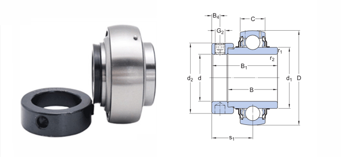 嵌入式軸承基于密封深溝球軸承設計的。 這種型式的嵌入式軸承適用于旋轉方向固定的應用。 內圈兩側加長,且帶有偏心套,可快速方便地裝在軸上。
